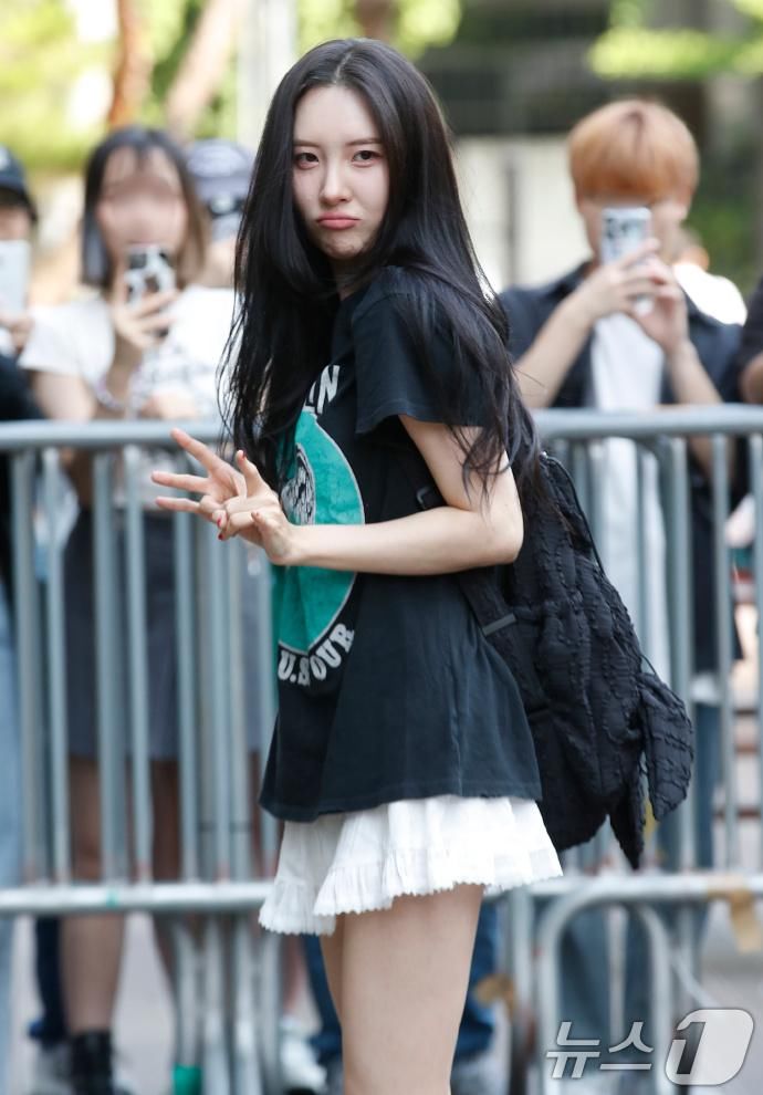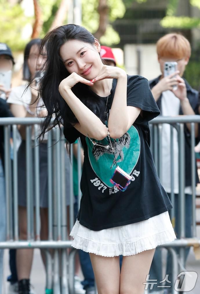 最近,宣美上班穿搭引发热议,这次的宣美选择了了一款深色印花T恤搭配了白色蛋糕迷你裙,脚踩短靴,肩背蝴蝶结双肩包,大方对着镜头摆pose,是不是俏皮十足?