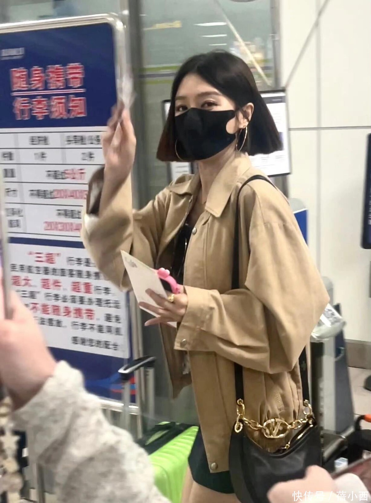 也许是大家看腻了黑色夹克外套,也许是当下盛行美拉德风,以至于秦岚身上穿的这件浅棕色夹克外套,带给人眼前一亮的惊艳感。