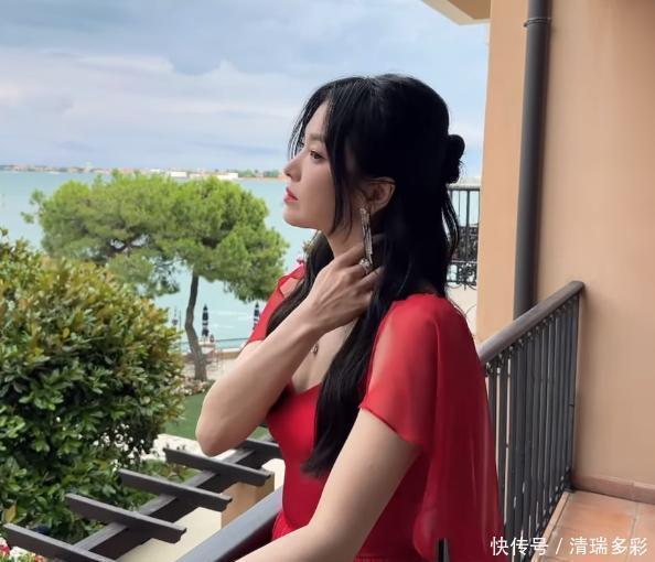 有一种明艳的红,再配合从容自信的美,难怪大家都说乔妹和高圆圆一样,在威尼斯的夜幕中闪耀。