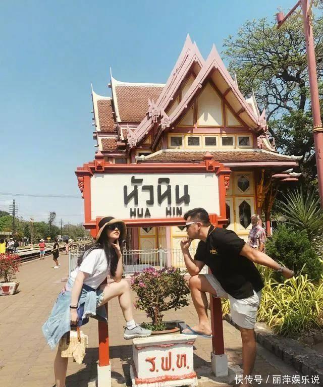 刘亦菲的旅游穿搭尽显清新与休闲。她身着蓝色牛仔裙搭配白色上衣,简约而不失时尚感。黑色帽子和白色凉鞋的点缀,更添一丝随性。在华欣火车站前,她坐在写有“HUA HIN”的牌子旁,与背景中的泰式建筑相映成趣,散发出迷人的魅力。