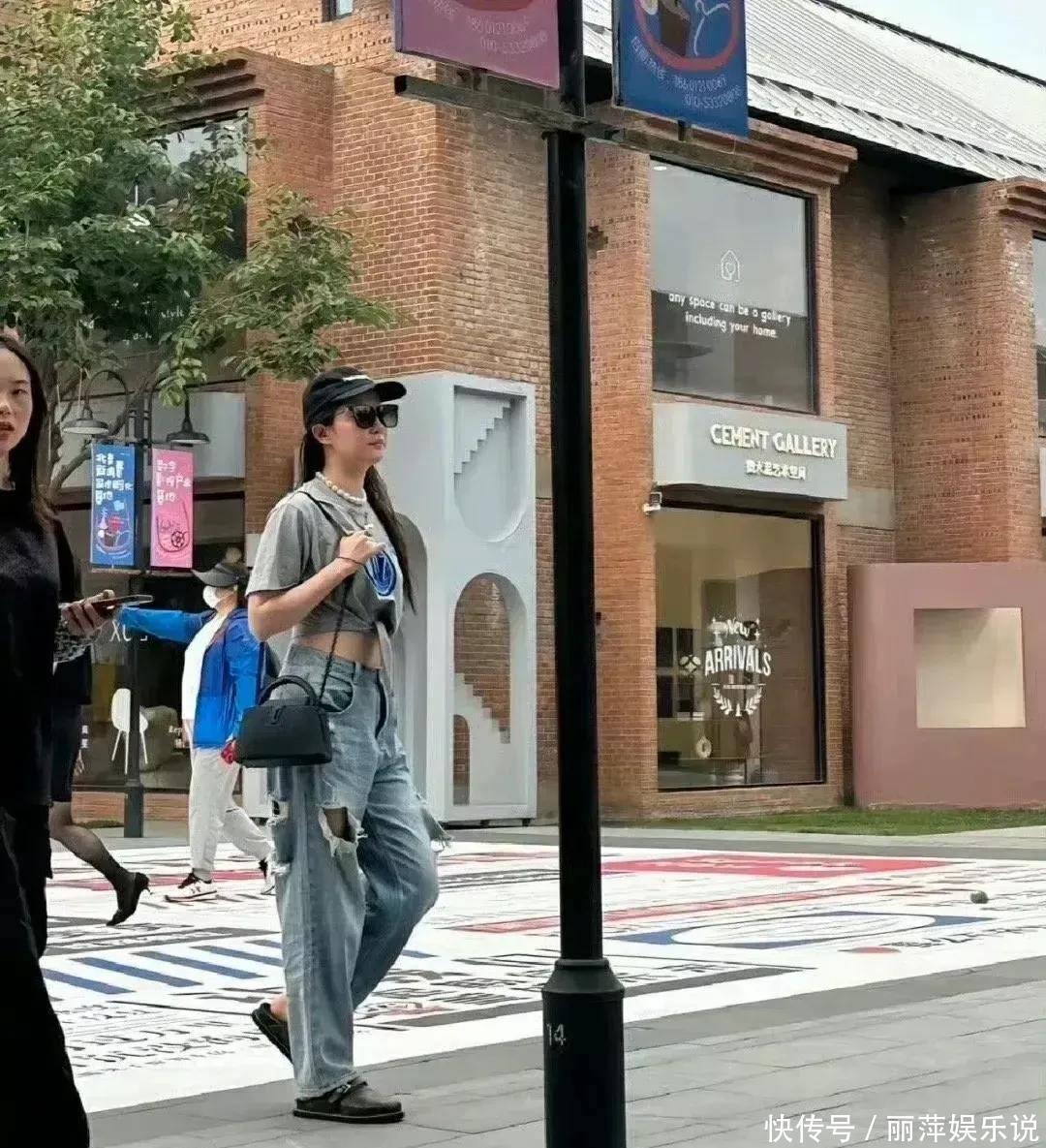 刘亦菲逛街时的穿搭尽显随性与时尚。她身着一件灰色露脐T恤,展露出她纤细的腰线和健康的肌肤,给人一种青春活力的感觉。搭配一条破洞牛仔裤,不仅凸显了她的个性与不羁,还显得腿部线条更加修长。脚下,她选择了一双平底拖鞋,既舒适又方便行走,展现出她不拘小节的一面。