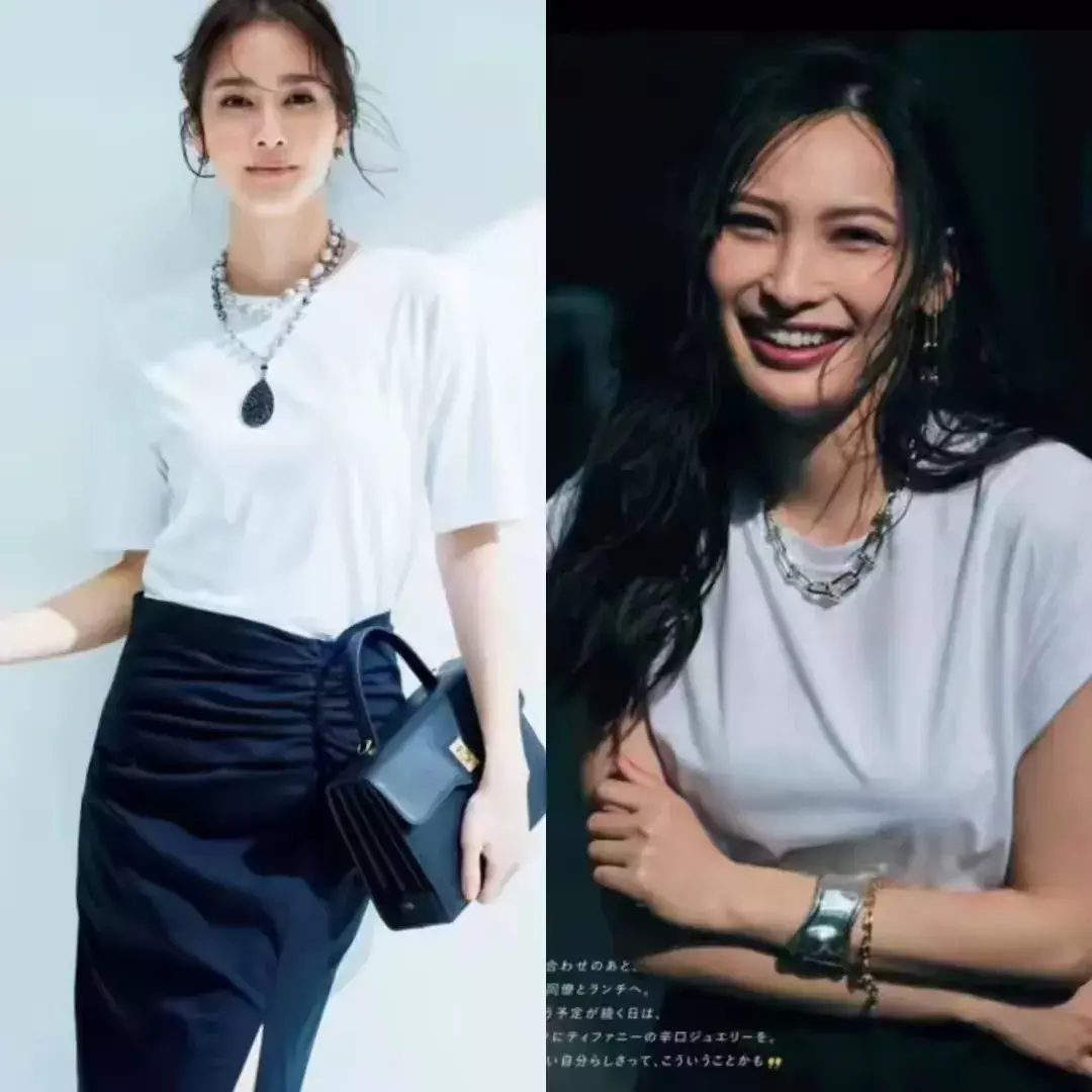 如果你选择白T恤,尽量选择和半身裙搭配,这样的情况会能展现你的女性魅力,变得更加的有女人味,优雅得体大方。不过,白T恤的面料一定要有光泽感,透气性好,上身之后才会更有质感。