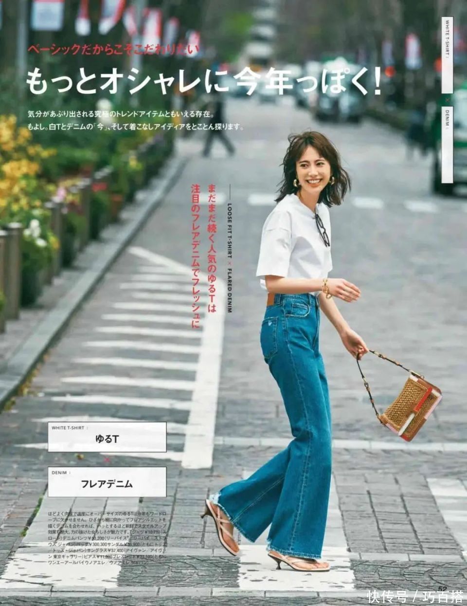 白T恤+牛仔裤是通勤装备中出场率仅次于衬衫+西装裤的,通勤穿干净利索,日常穿精气神十足还能减龄。