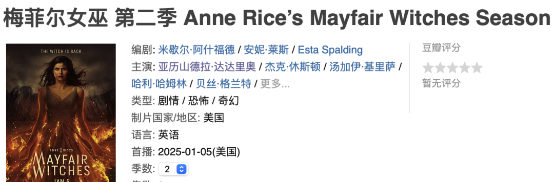 比如最新回归的这部《梅菲尔女巫》,一经播出就成为了AMC+流媒体平台首播收视最高的剧集,甚至超越了同宇宙设定的《夜访吸血鬼》..