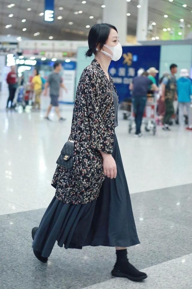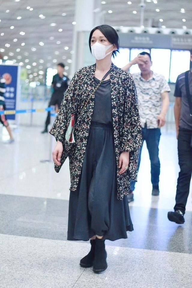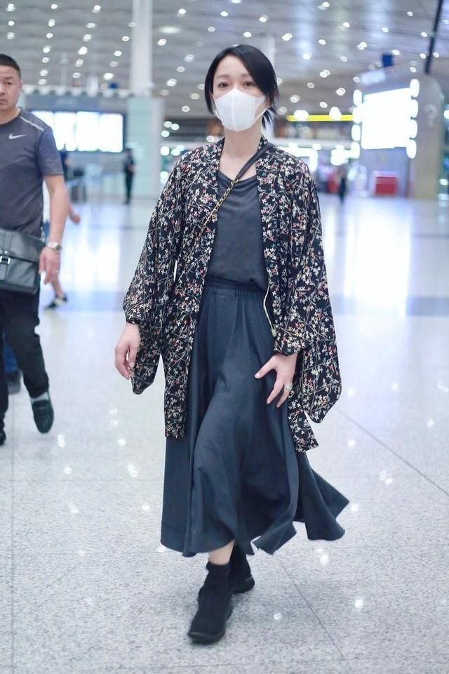 周迅的日常搭配总是比较随意,比如这件T恤和半身裙结合了印花外套的个性叠穿,也体现出了很强的时尚感。外面的印花外套充满着设计感,不同的花色也能够凸显出不同的风格。