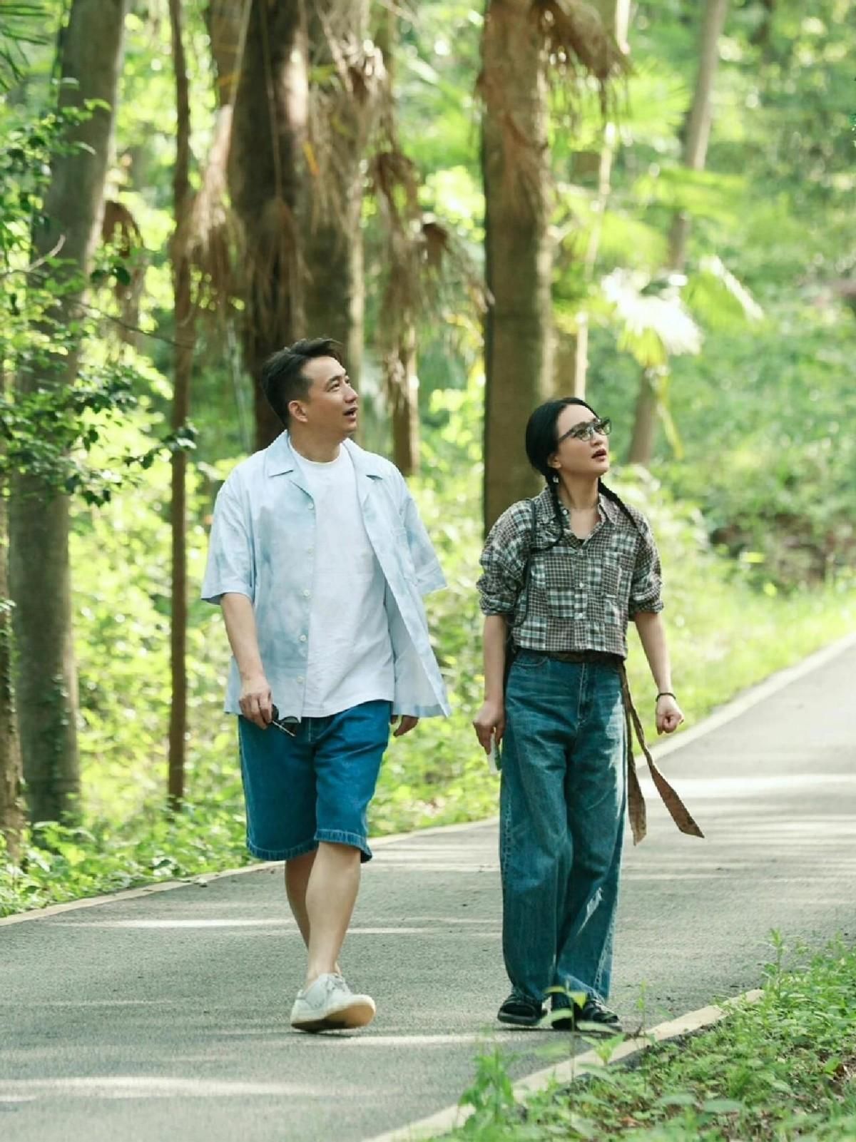 周迅在衬衫下半身配上牛仔阔腿裤,这条裤子款式很经典,也很适合日常,尤其是高腰的阔腿牛仔裤配上短裤的衬衫,它可以在拉高我们身材比例的同时凸显出大长腿,如果你属于小个子,可以尝试高腰的牛仔长裤。