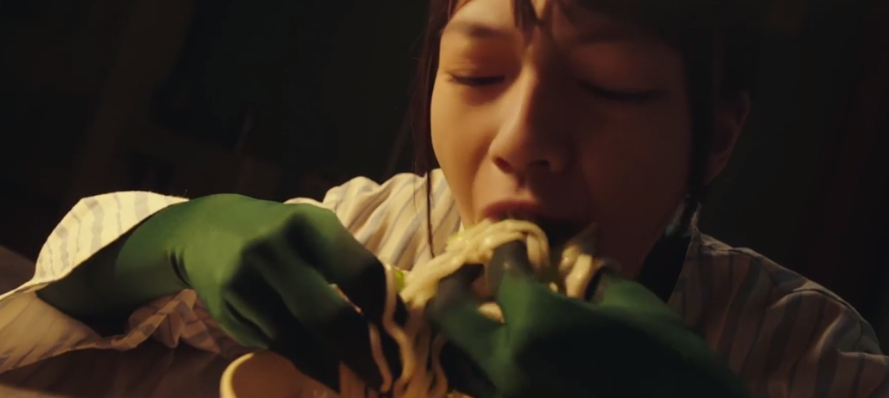 所以我们可以看到镜头中的陈朵连走路都需要人牵引,吃饭也只会用手抓着往嘴里塞,所有行动都是最原始的模样。