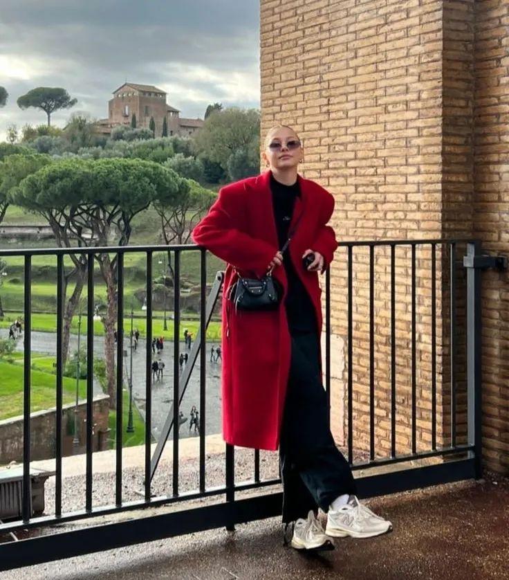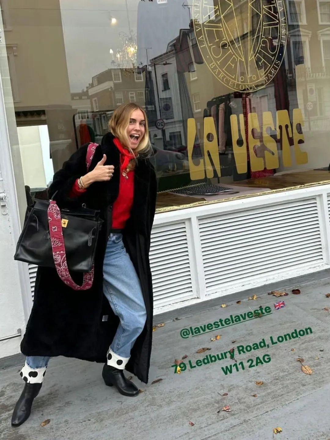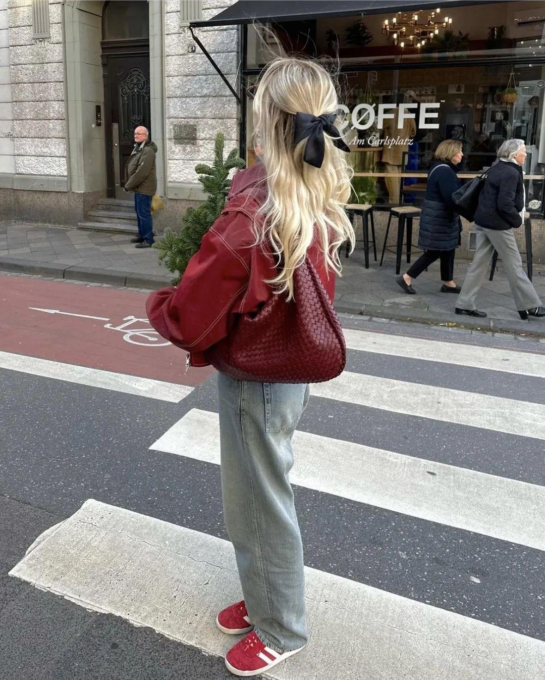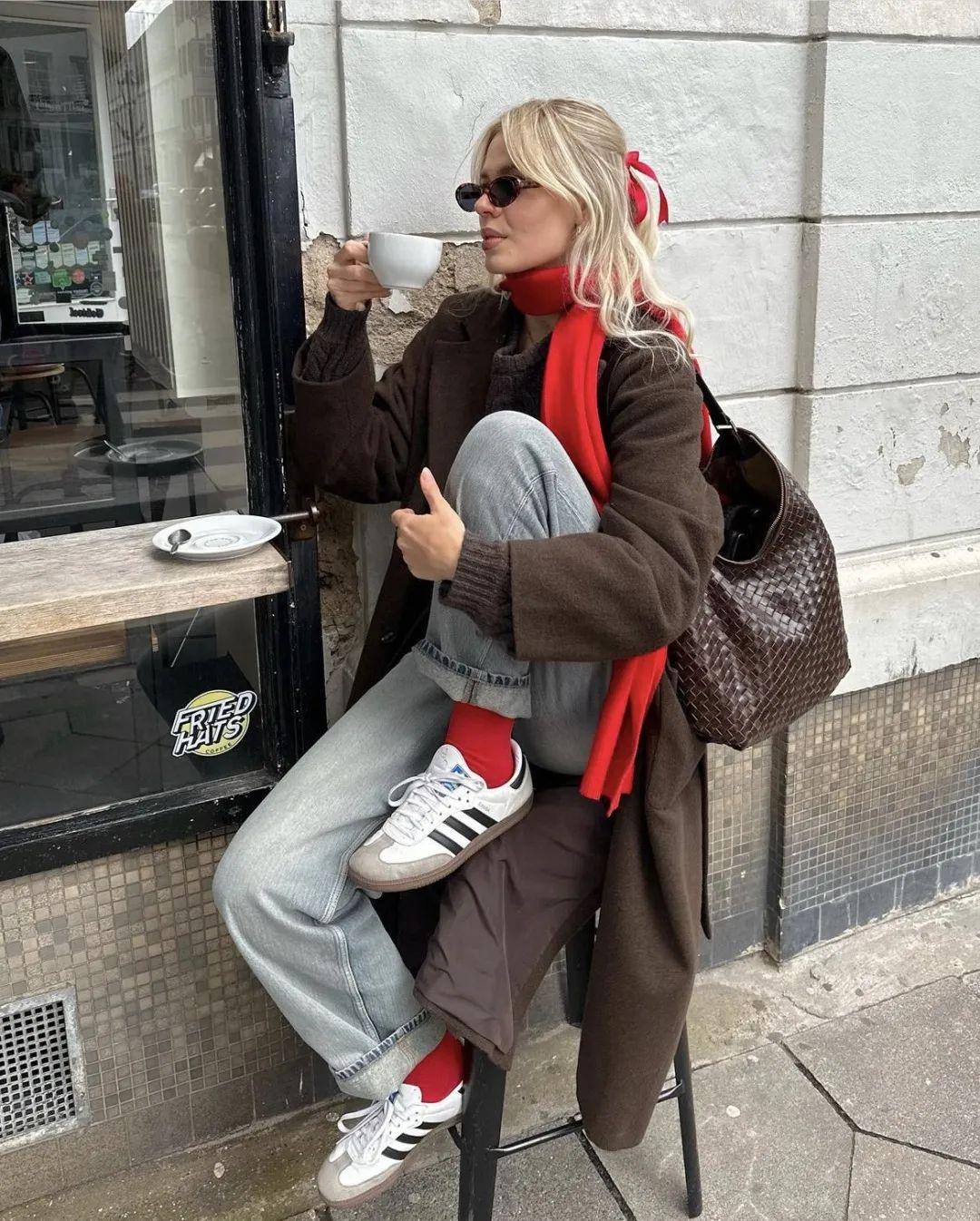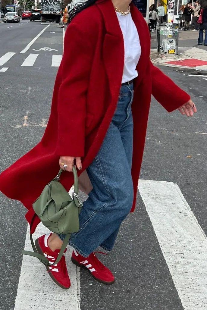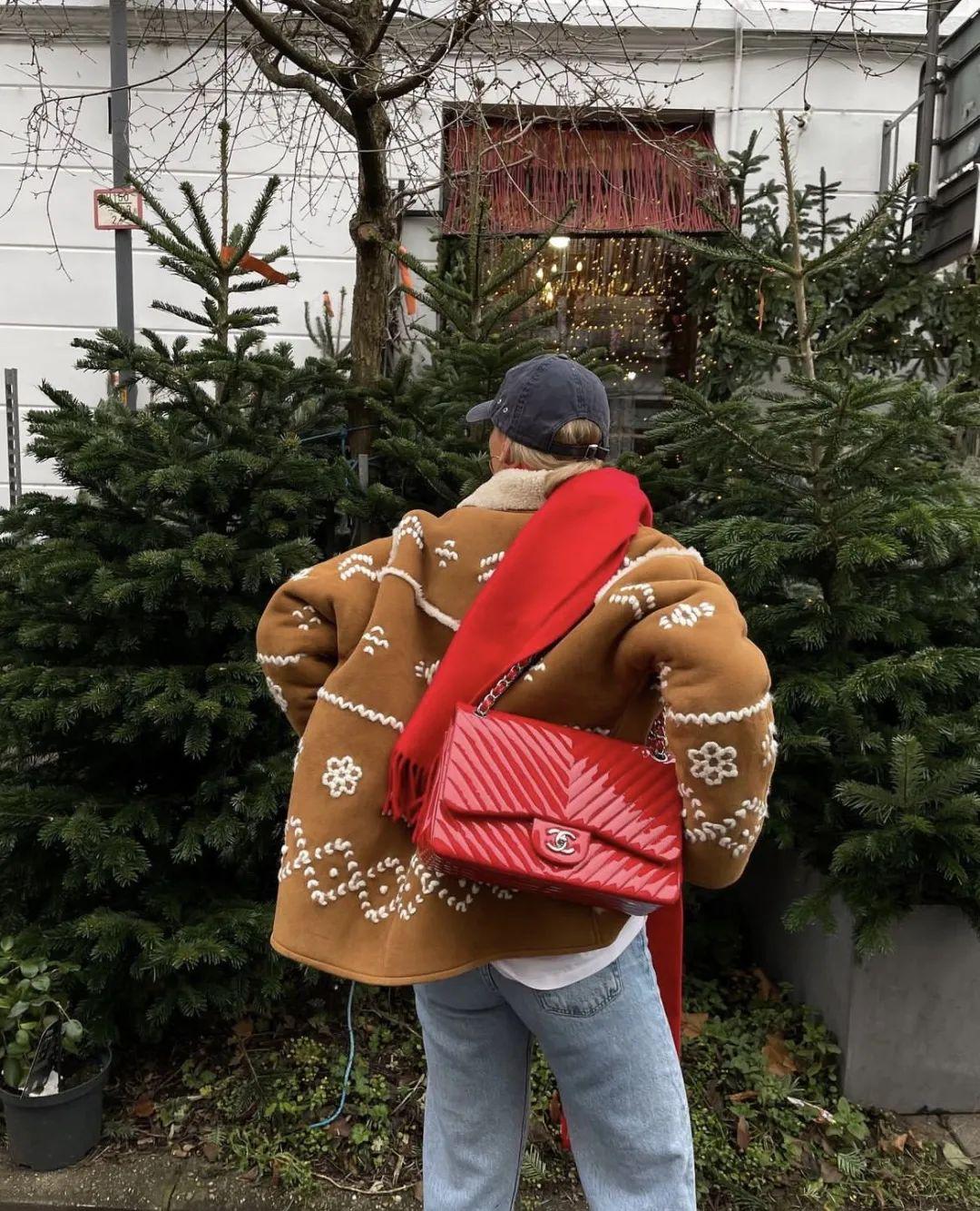 当然也可以把这个思路,换成包包和鞋子的红色组合,且格外适合棕色系或者驼色系的大衣,有温度的复古时髦感,就是冬季最好的点缀。