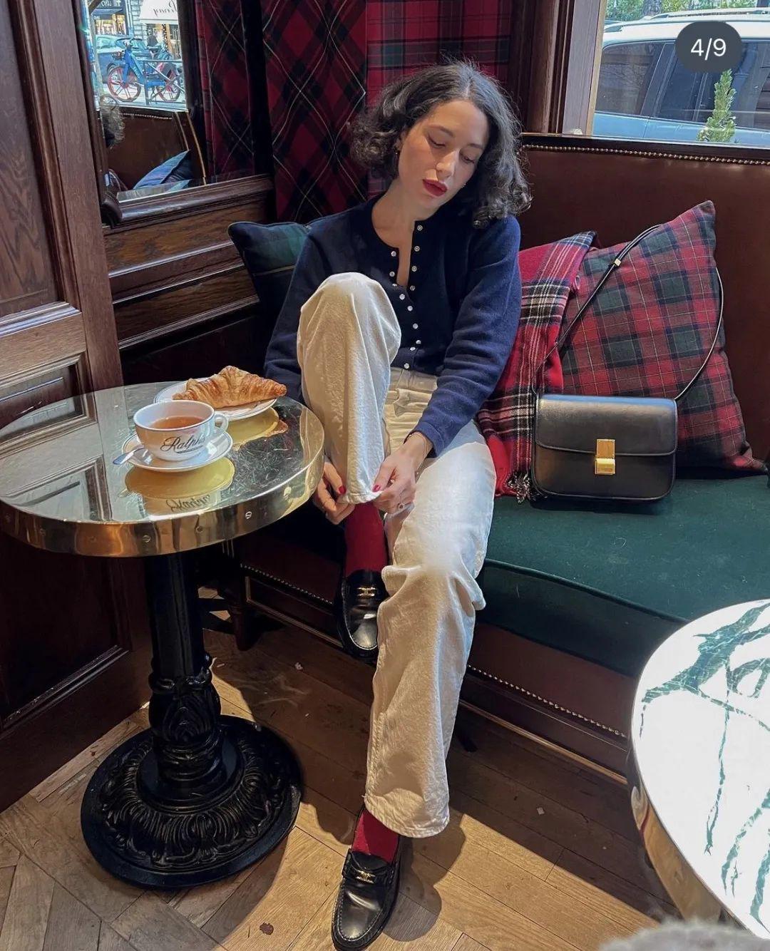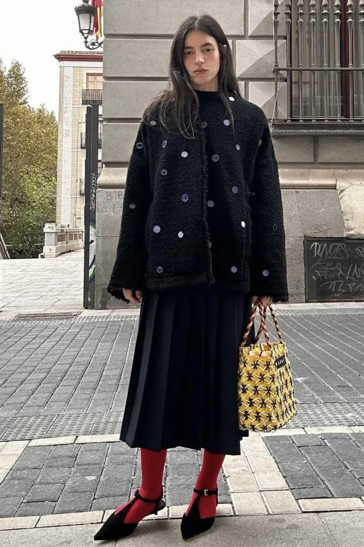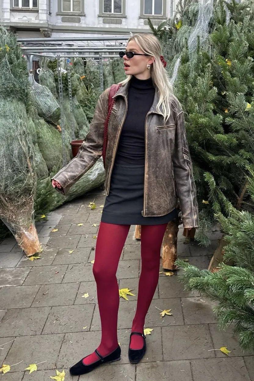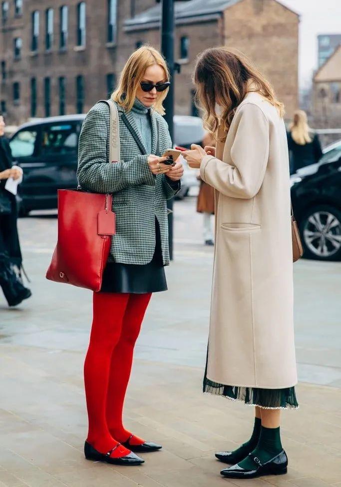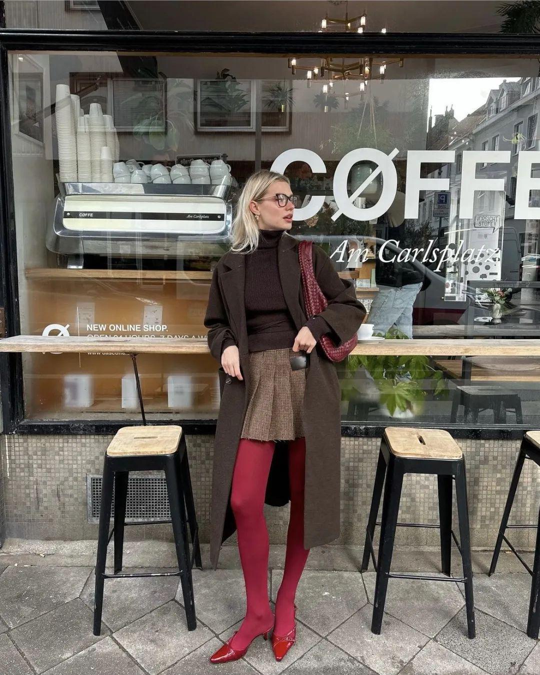 亦或者今年很流行的裹腿袜,众多国外博主都选了酒红色或者正红色,只要大衣外套足够沉稳压阵,这种穿搭反而出其不意的有趣有料。