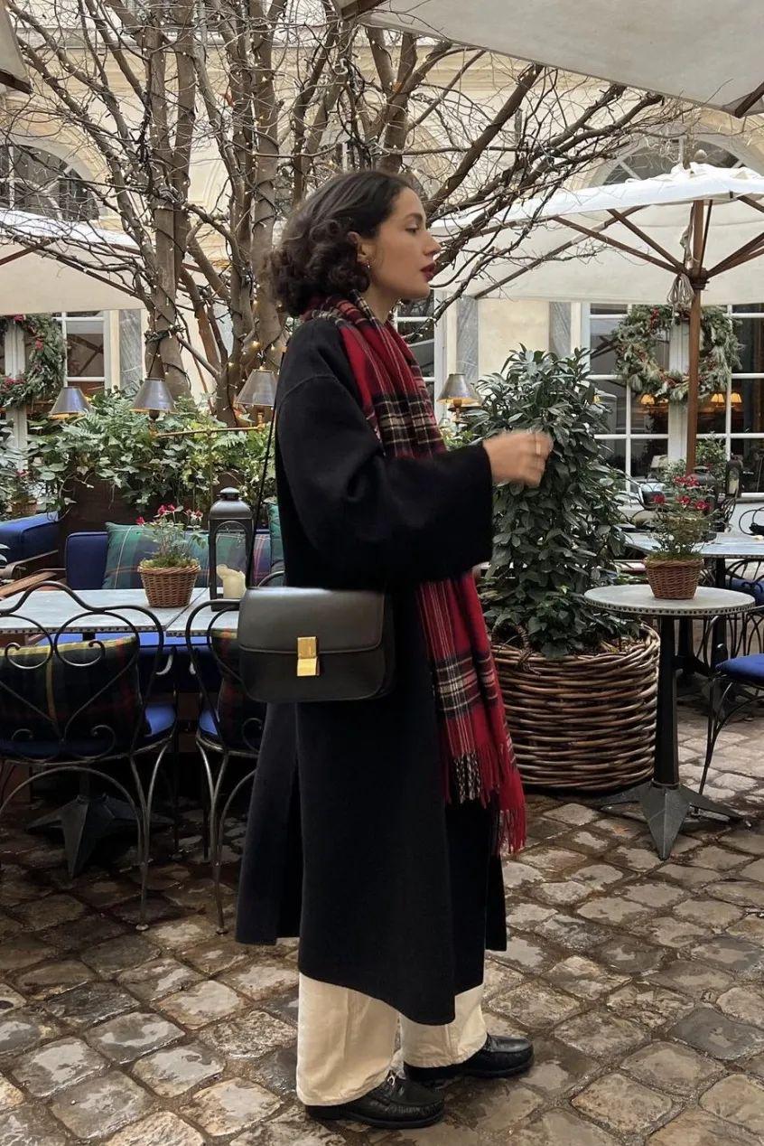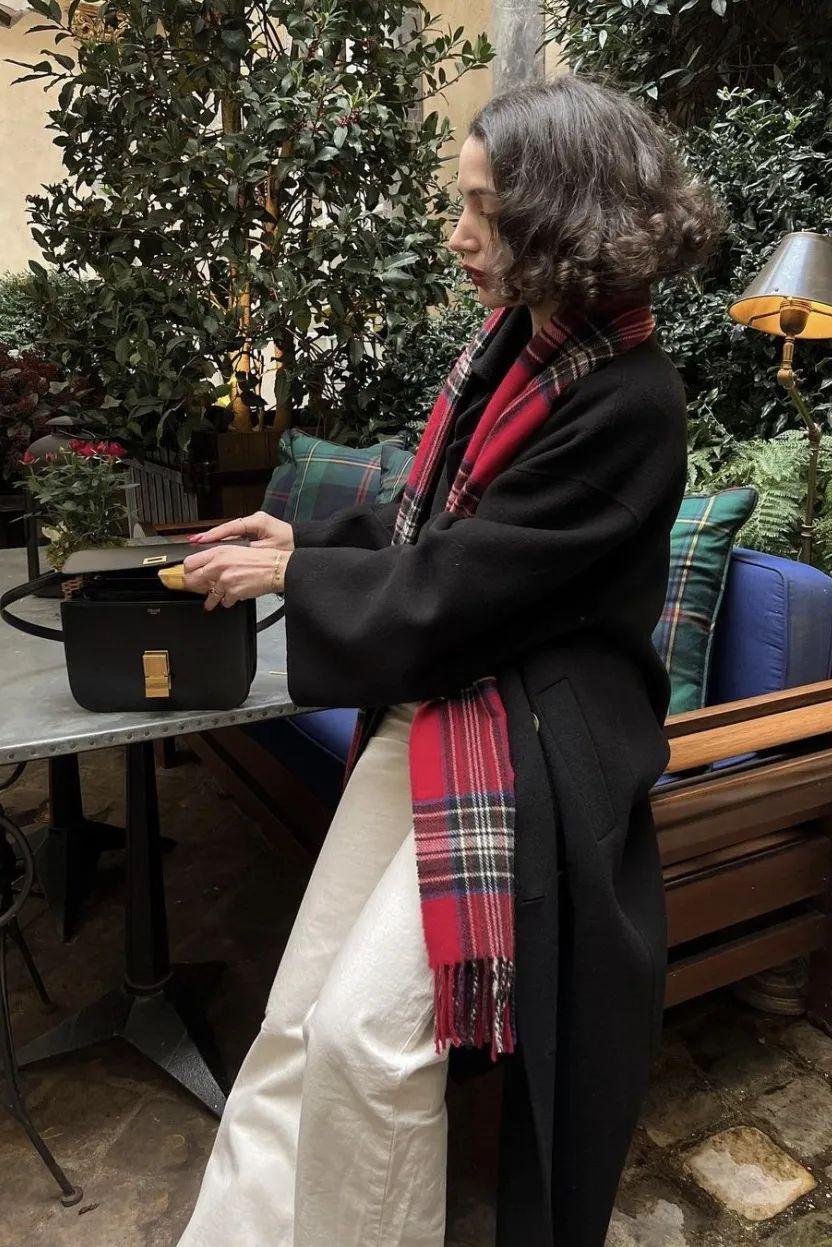 或者一条红色系格纹围巾,只要配色精彩,红色系的格纹围巾,特别有年味氛围。