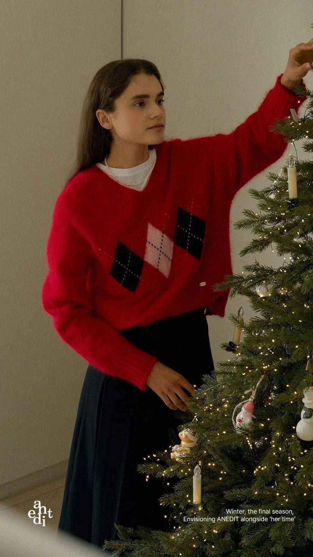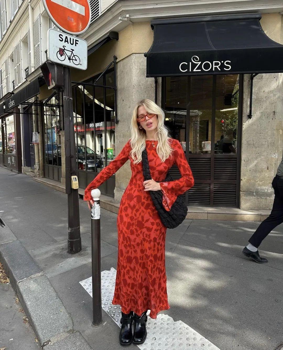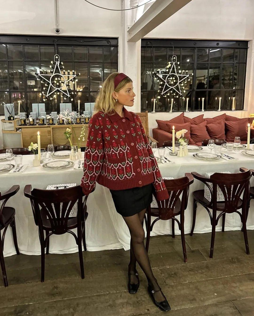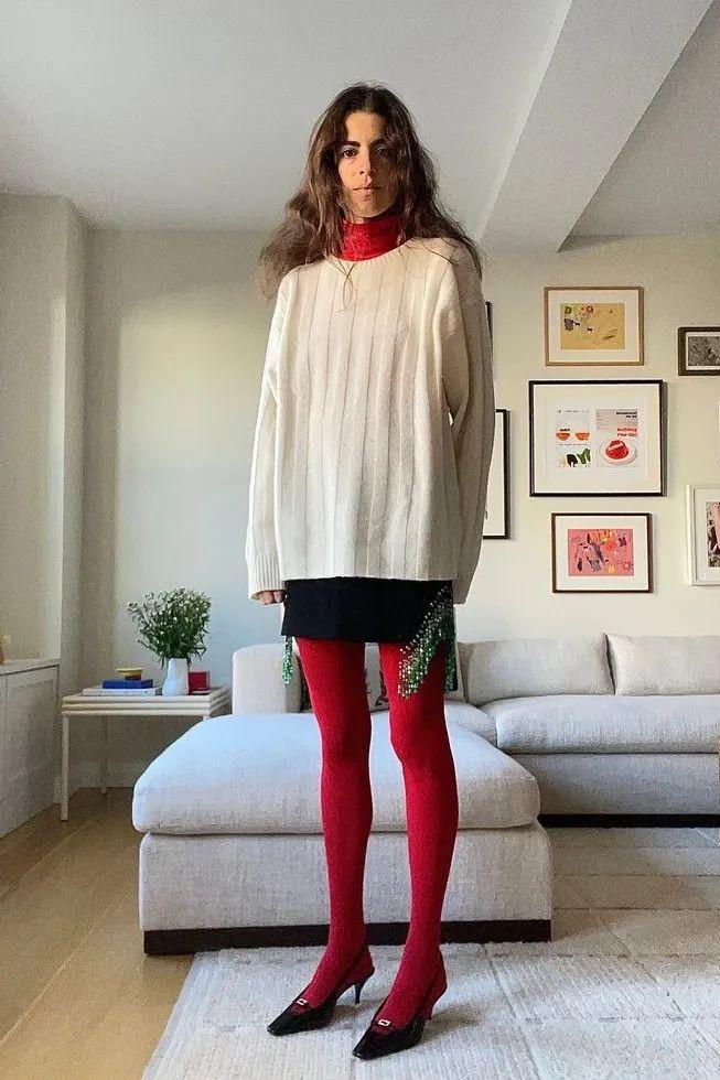 除了裤装以外,各种裙装也是红毛衣的百搭CP,只不过伞裙浪漫,直筒裙优雅,超短裙摩登,就看你的适合和喜好了。