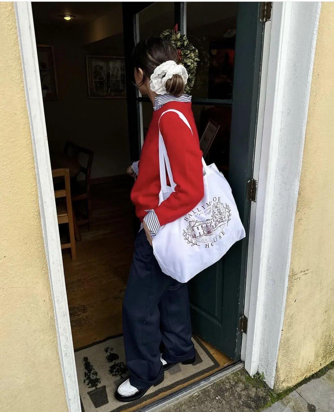 30%是一个更为日常轻松的红色比例,可以说是大众接纳度最高的区间,而这个比例基本更侧重在围巾、包包、鞋子、内搭的红色塑造。