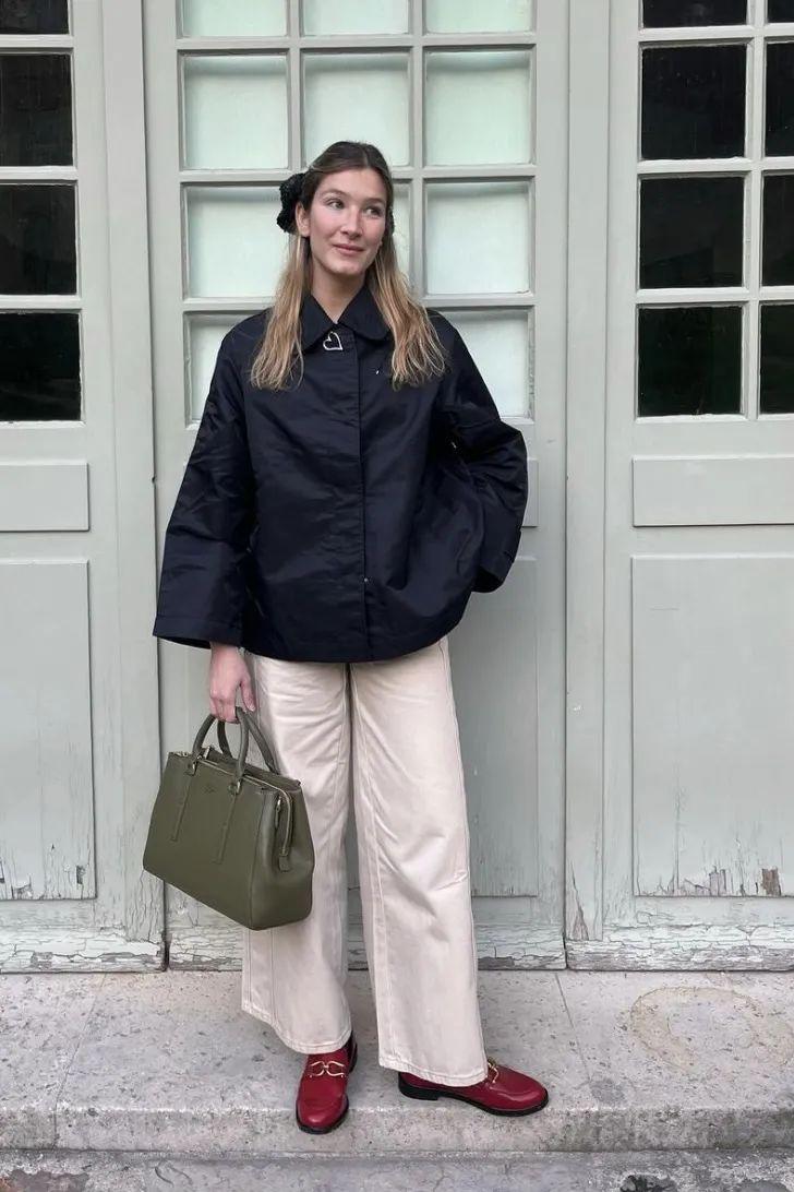也可以是一双小巧的鞋子,特别是玛丽珍和乐福鞋,这种圆润的鞋头,露出一点点在裤子外面,就非常吸睛有趣。