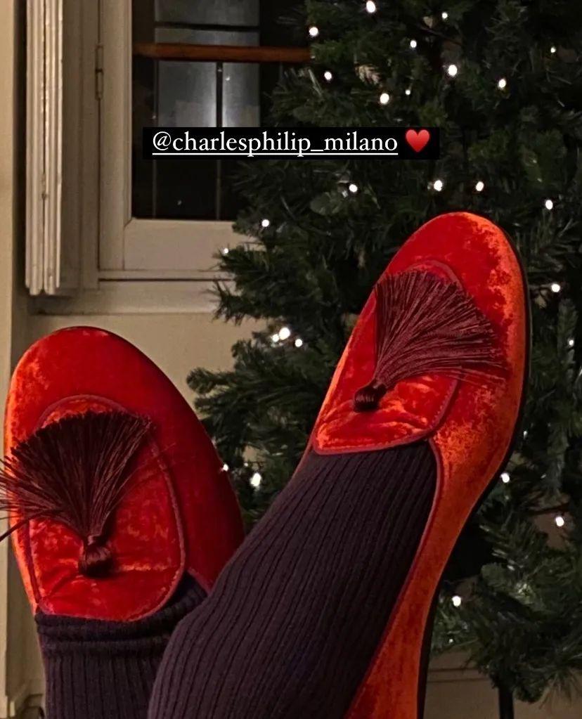 当然一双红色系的袜子,从裤脚似露非露的被看见,更有不经意间的惊喜感。