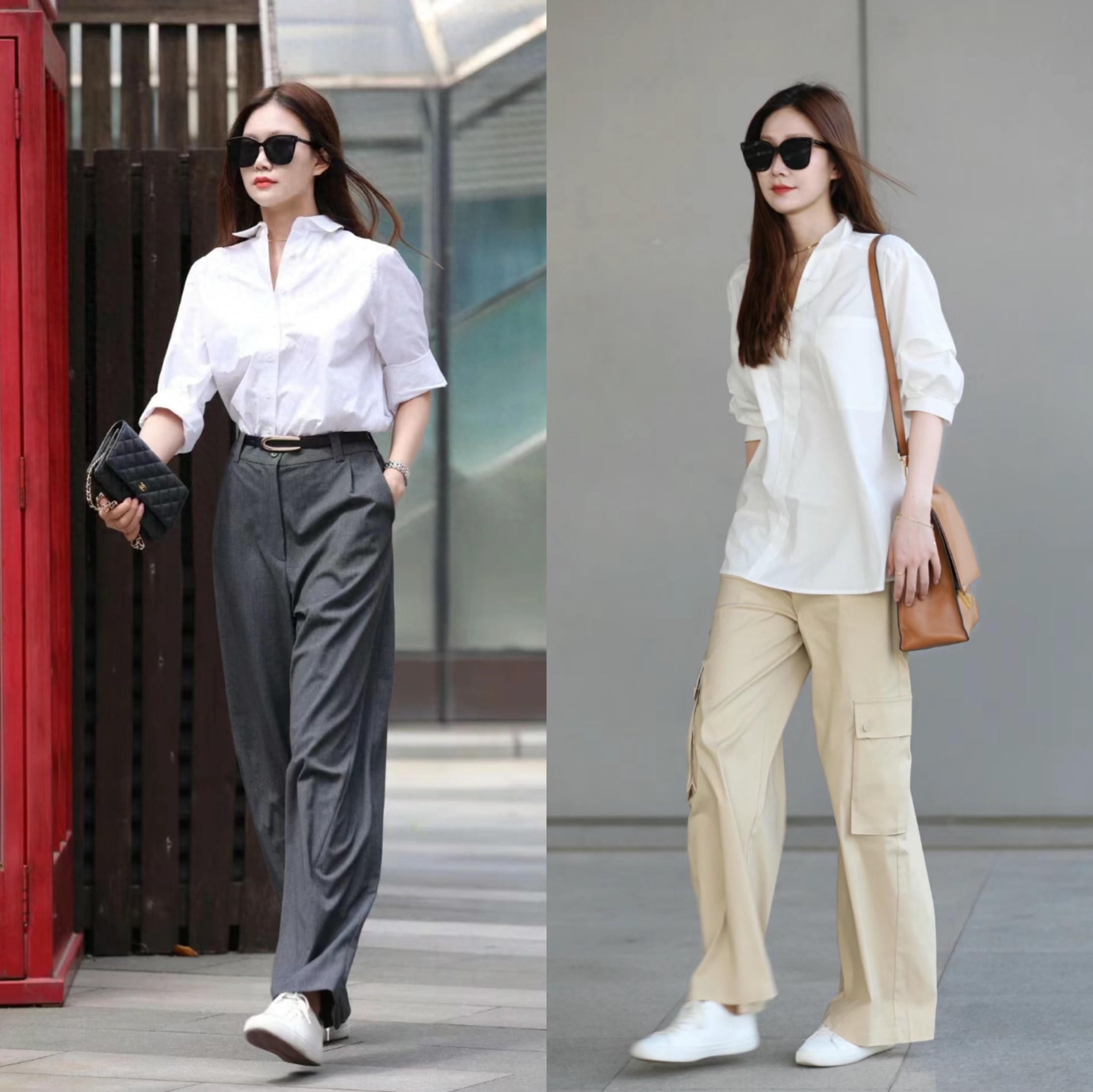 衬衫与阔腿裤的搭配能打造出一种随性而洒脱的时尚感。