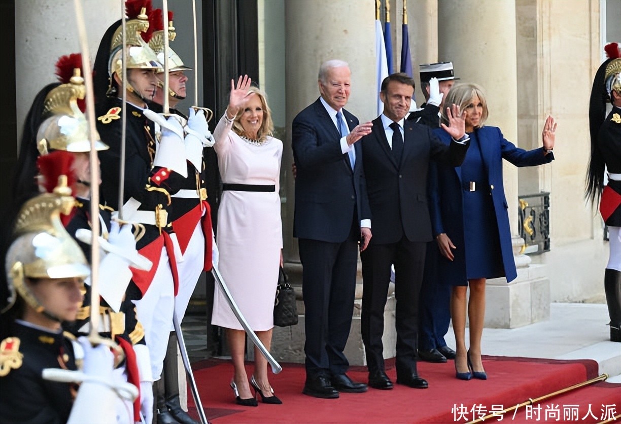 拜登夫妇正式访问法国!布丽吉特叠穿蓝色踩恨天高迎接,把人美到