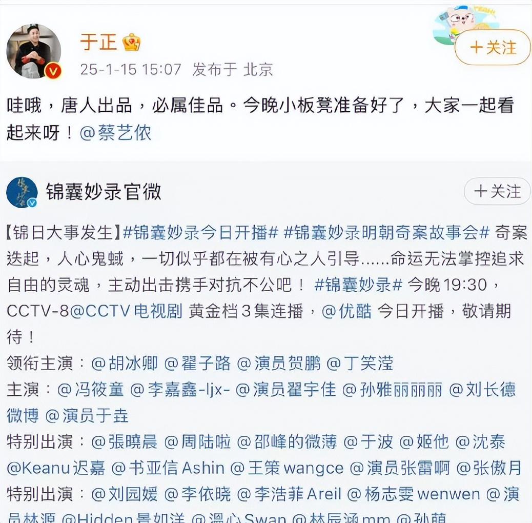就连和唐人老总有口角矛盾的于正,这次也难得没有吐槽,而是破天荒的夸了一下。