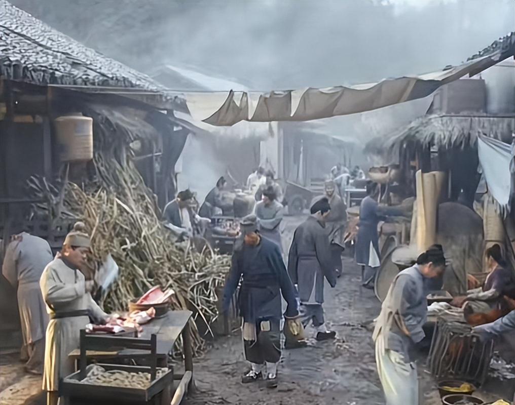 炊烟袅袅升起,市井热热闹闹,人们走着十分泥泞的道路,为着自己的生活而奔波。