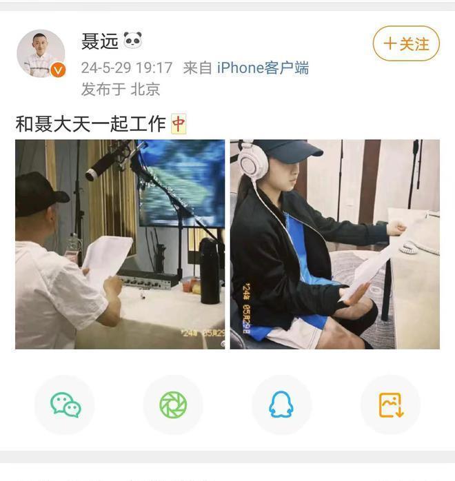 5月29日,聂远发布了一张与女儿在配音现场的工作照,照片中的他坐在显示屏前,专注地对着稿子进行配音工作,而旁边的女儿天天也戴着耳机,手拿稿子,似乎在模仿爸爸的工作。这一幕温馨的“父女档”工作瞬间,不仅展示了聂远与女儿的亲密关系,也激发了网友们对这对父女未来可能的合作的期待。