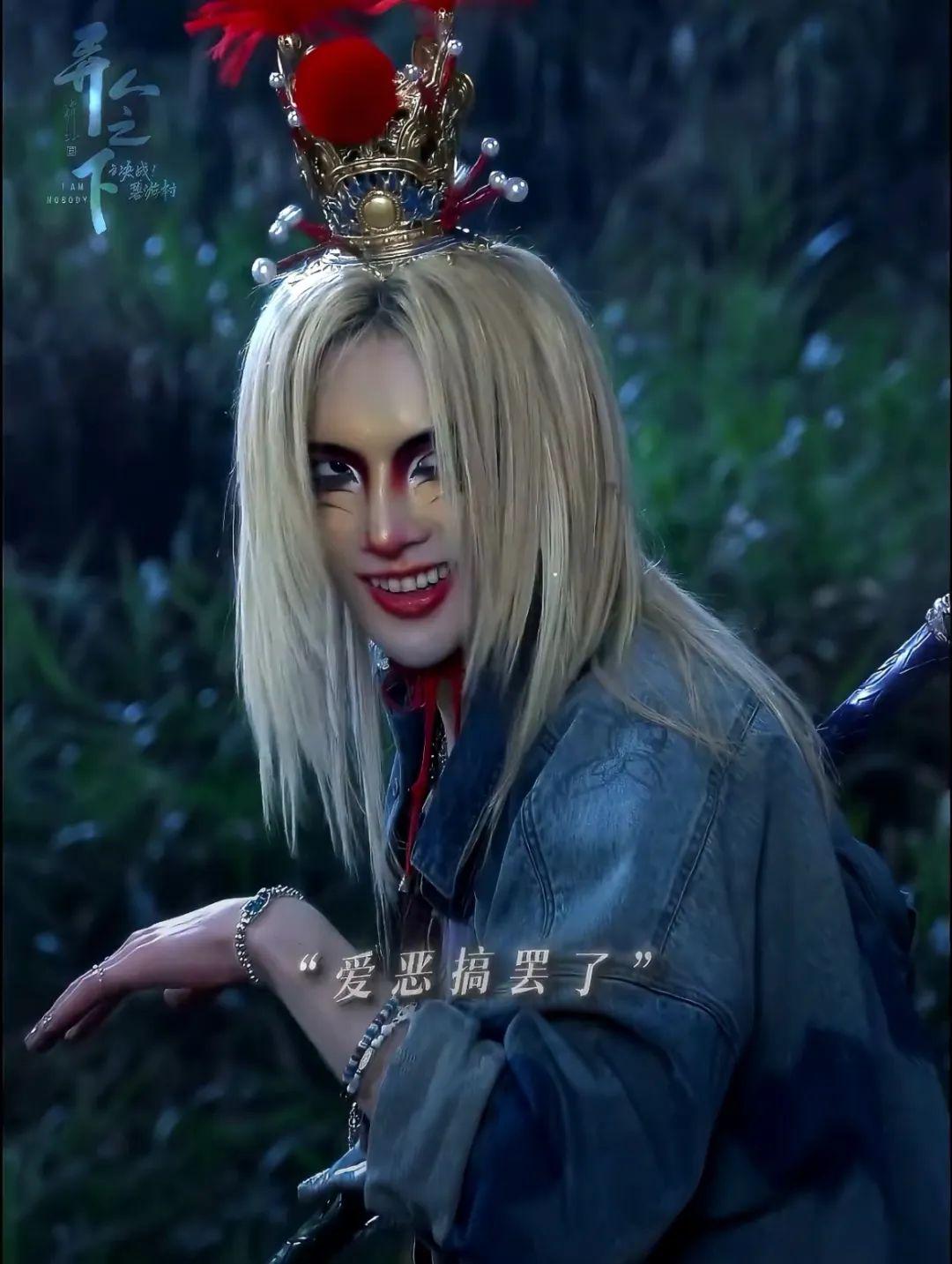 王震球是男生女相的美男子,气质亦正亦邪,剧中没有还原他的及腰长发,而是用更现实的中长发替代,演员自己的头发染金也较自然。桃花眼、薄唇、白面,虽然是最浮夸的一个人,但表情不油腻反而有癫感,新出现的神格面具造型令人惊喜。