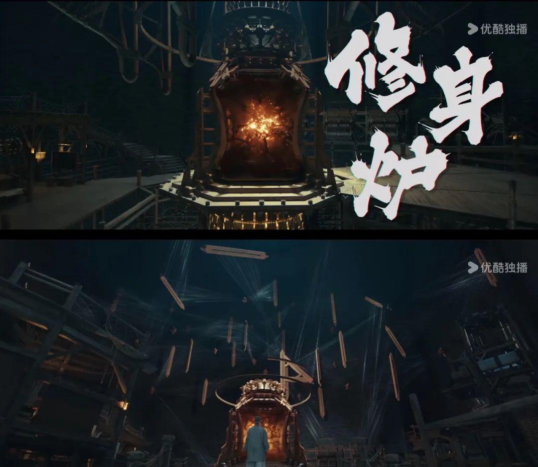 碗窑古村落化身的“碧游村”和大型“修身炉”等神器,融合了国风和赛博朋克,修身炉的设计参照传统织布机,整个炉子由丝线串联,简直机械爱好者福利。