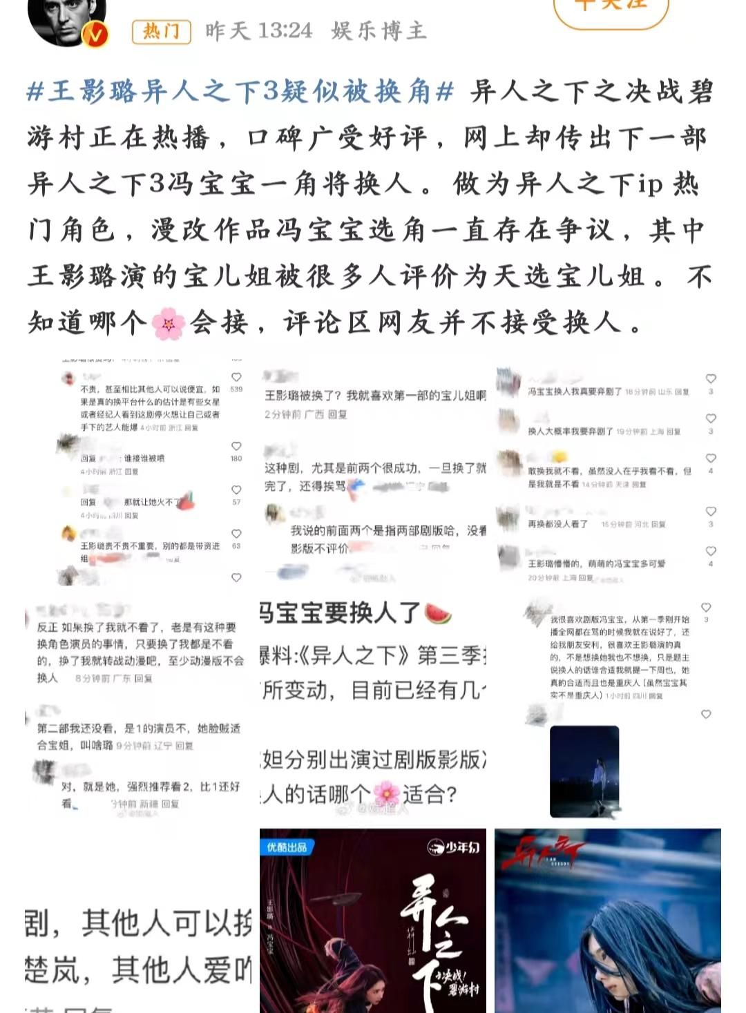 这一举动自然遭到了网友的强烈抵制,也有网友喊话剧组:换人就再也不看了!
