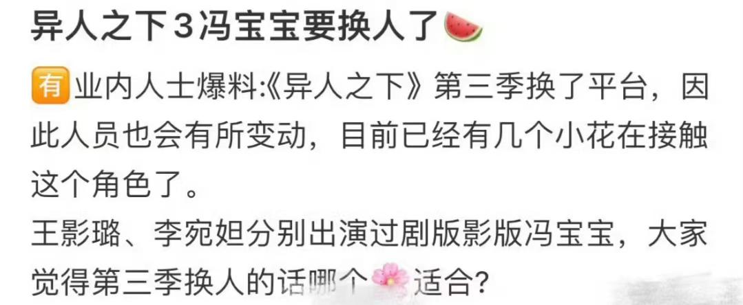 据传目前《异人之下3》已经接触了几位小花,但希望她们可以珍惜声誉。