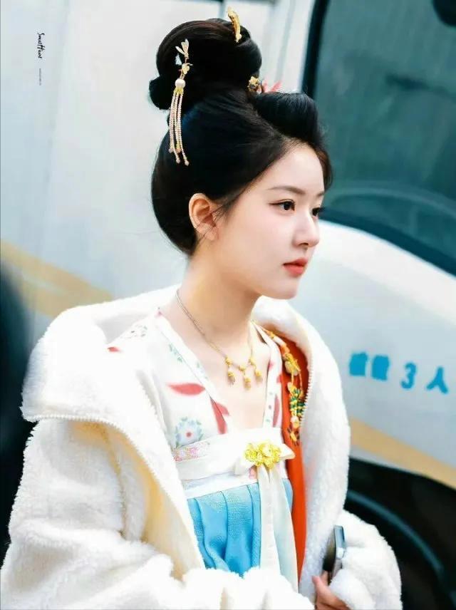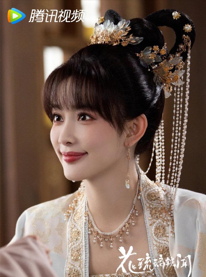 杨紫在《国色芳华》中的扮相,主打一个大气雍容——她摆脱了之前在各种古偶剧中的刘海造型,圆脸搭配繁复却不失气度的唐朝义髻,打造出一种头包脸的感觉,显得小脸愈发精致。