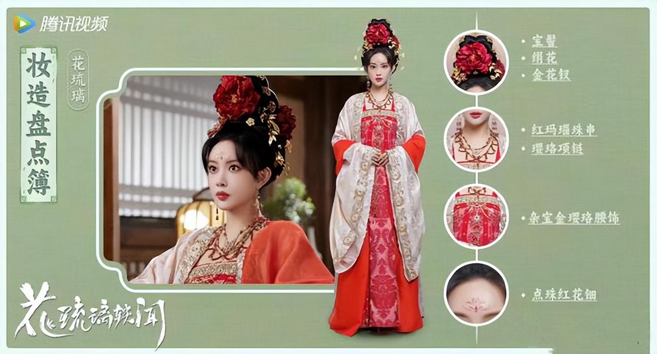 这部戏的服道化相当精致,每一帧都美得不可方物,哪怕是头顶大红牡丹花,也能做到花人合一。