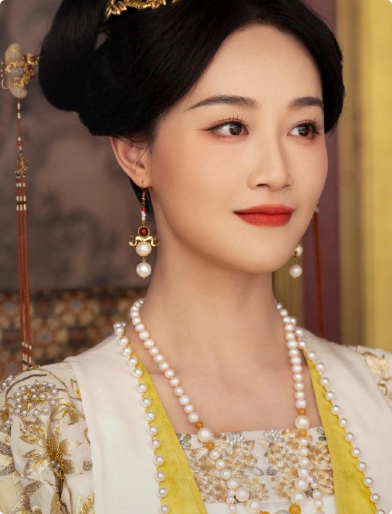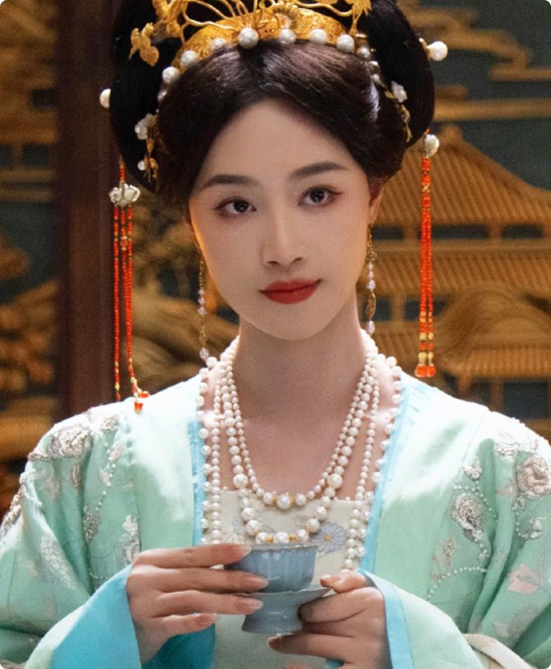剧中,蓝盈莹饰演的宠妃杨婕妤戏份不多,但是光看剧照就贵气十足,在剧方给出的海报物料中,也只有蓝盈莹把同样审美的古装穿出了一种贵气十足的宫廷剧既视感。