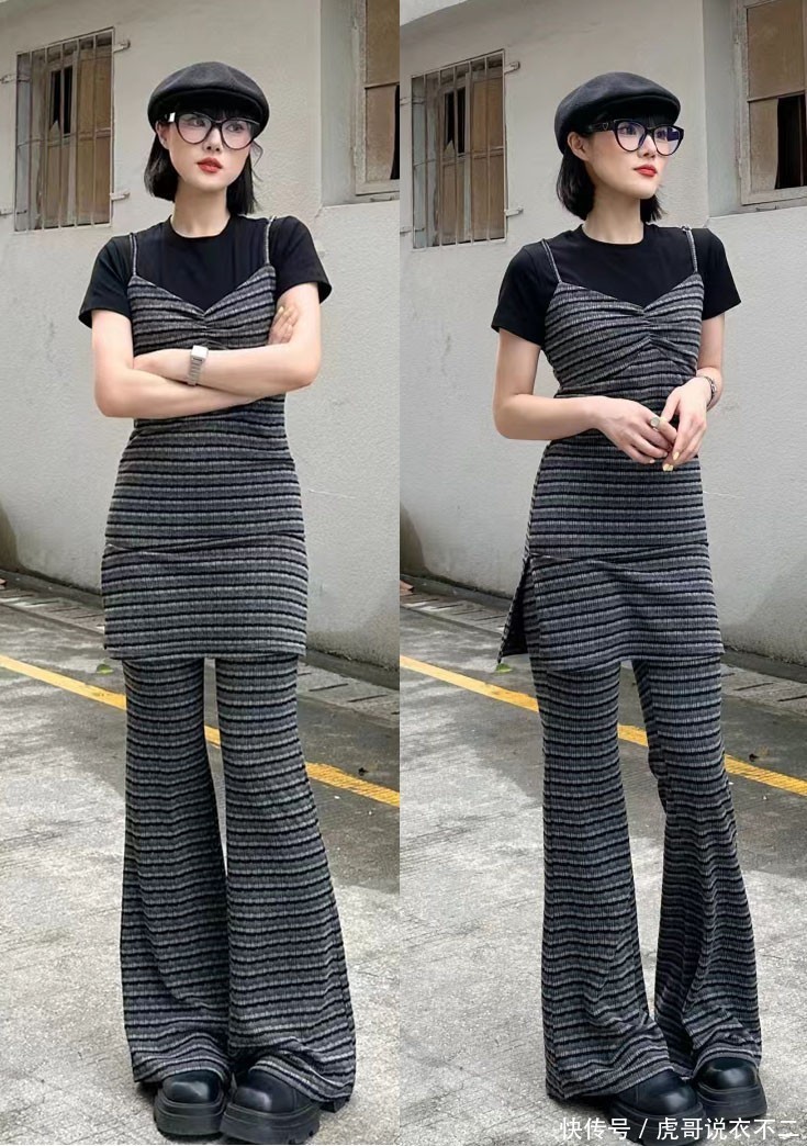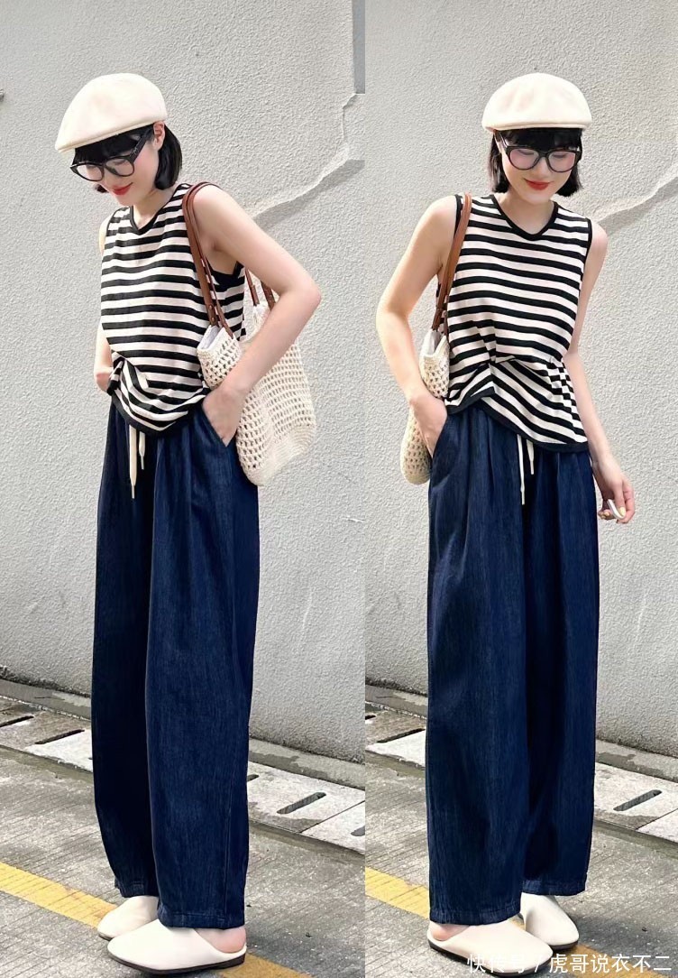 像是上图这位博主穿着的背心,采用了黑白横条纹的设计,经典又不过时,不需要其他的陪衬,就足够可以彰显出时髦有型的一面,令人轻松掌握好穿搭的时尚风采。