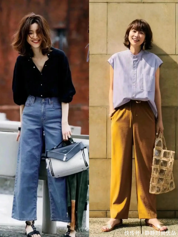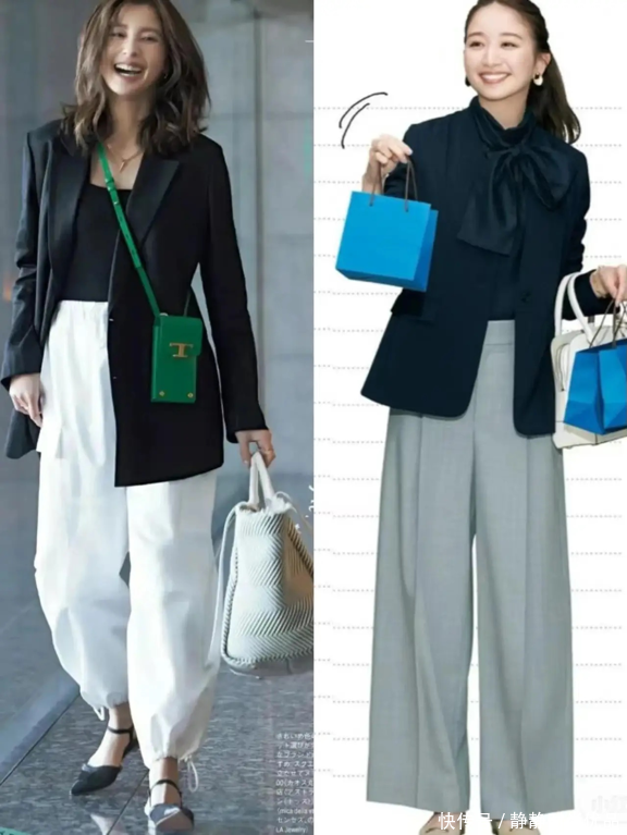 想要穿的舒适又简单,那么阔腿裤这种单品也是不可缺少的,像这些女生穿上这种阔腿裤搭配着西装或者是衬衫,也都相当的知性优雅。