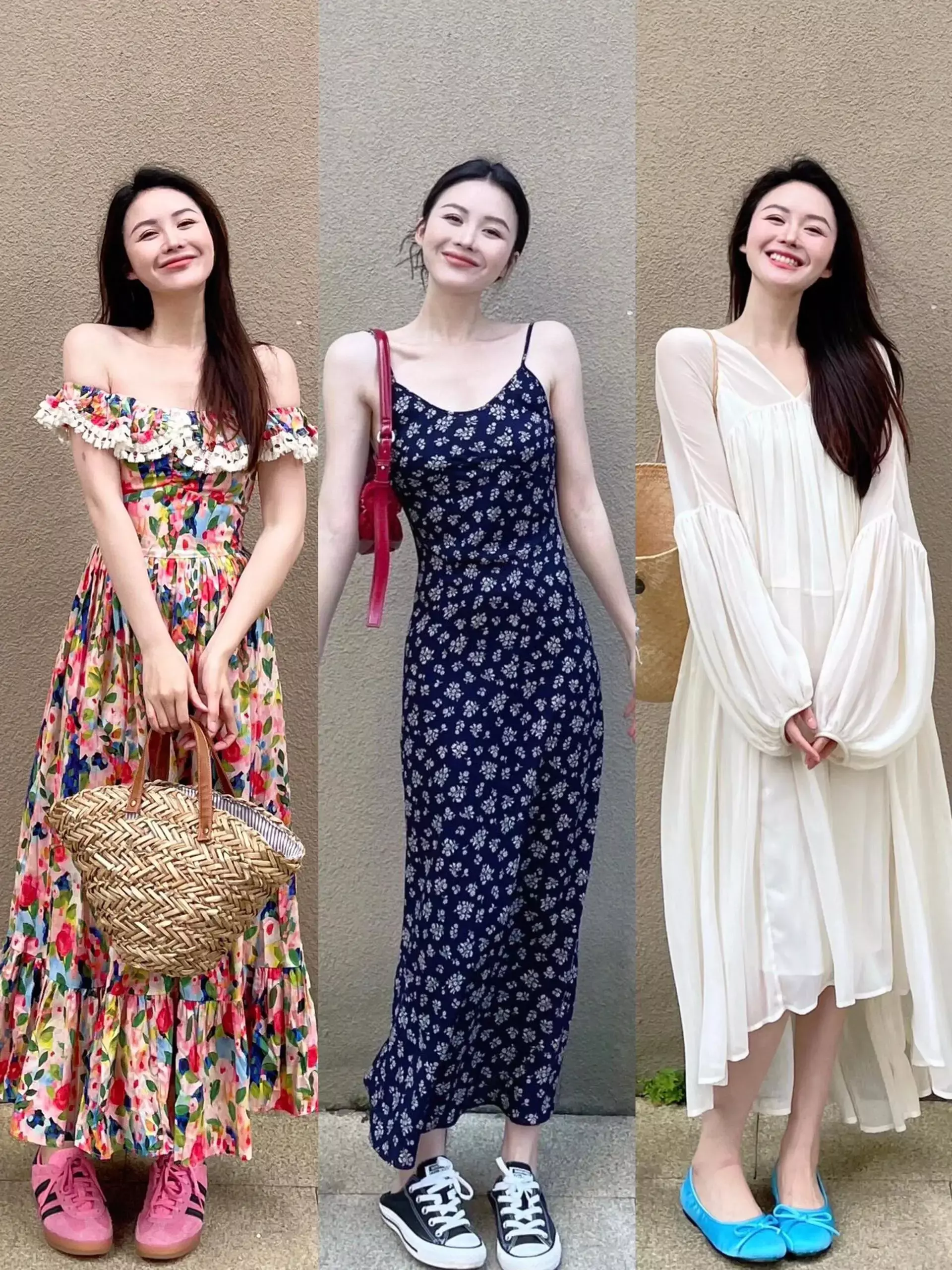 尤其是像吊带和挂脖裙修出自己优越的颈肩线条,增加露肤度的同时,又带着几分性感妩媚,特别适合游玩度假的时候穿搭,五一出行刚好。