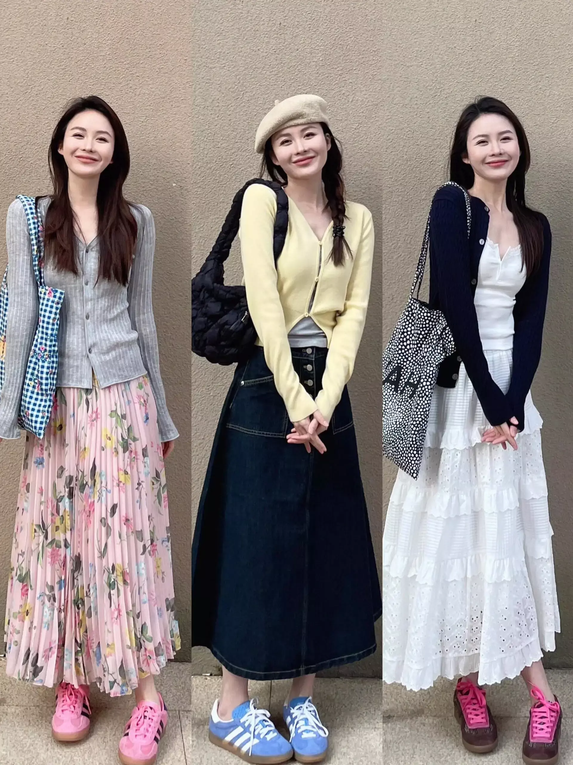 但是,搭配不好的话也容易显得老气沉闷,这位博主下半身搭配了一条干枯玫瑰粉的半身裙,整体呈现出一种素雅淡然的气息,宽松的款式设计,更多了几分随性自在和洒脱灵动。