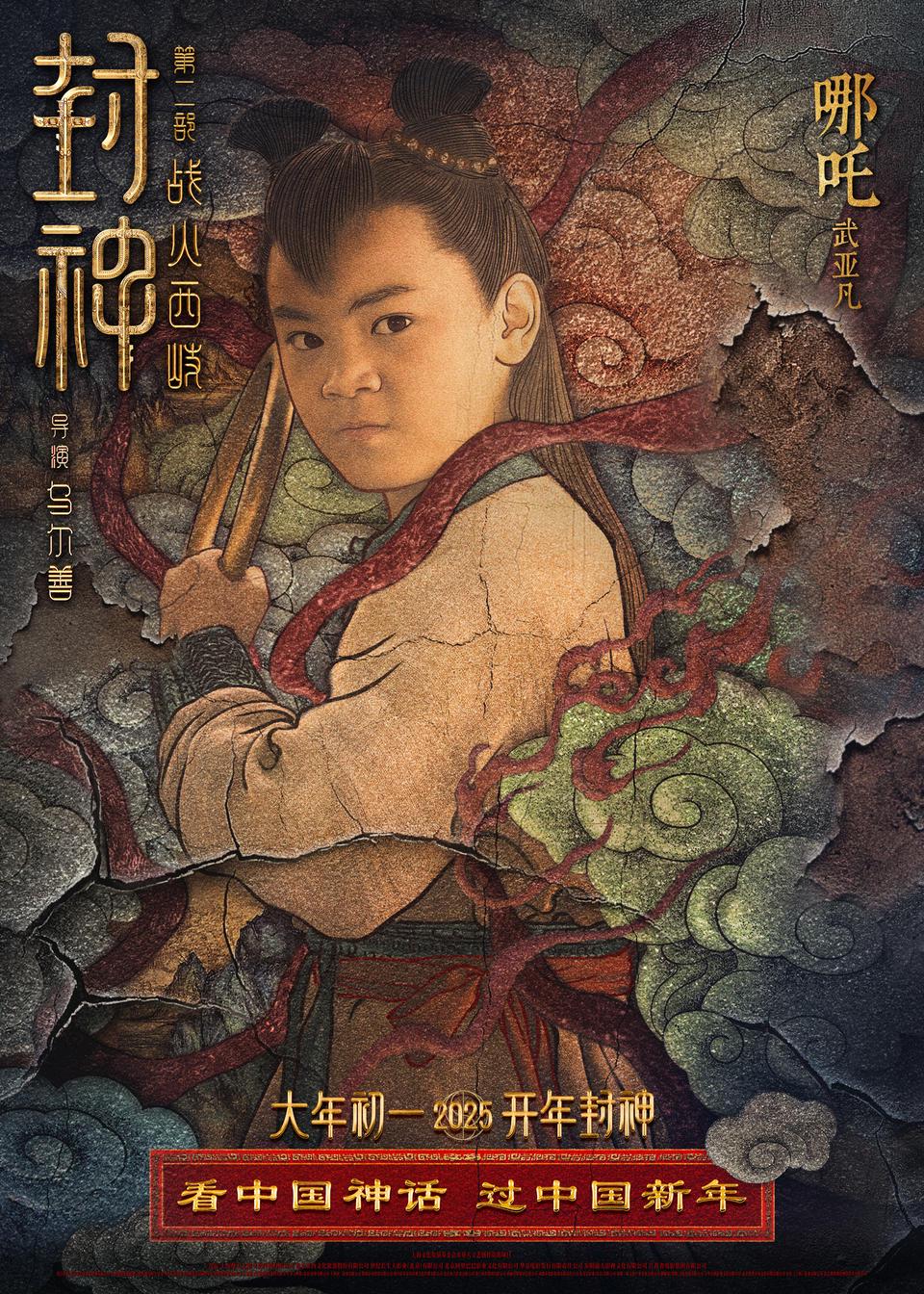 由导演乌尔善执导的国民神话史诗《封神第二部:战火西岐》发布“守护家园”版终极预告和12张“壁绘纳福”版角色海报。