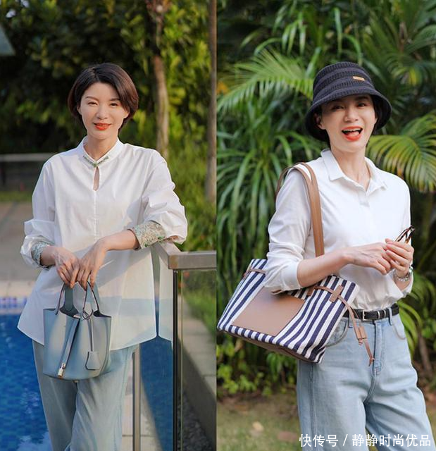 裤装的挑选也很重要,尤其是日常搭配,不建议大家总是穿紧身裤,这对于那些年龄已经过了40岁的女性来说并不是一件友好的单品。