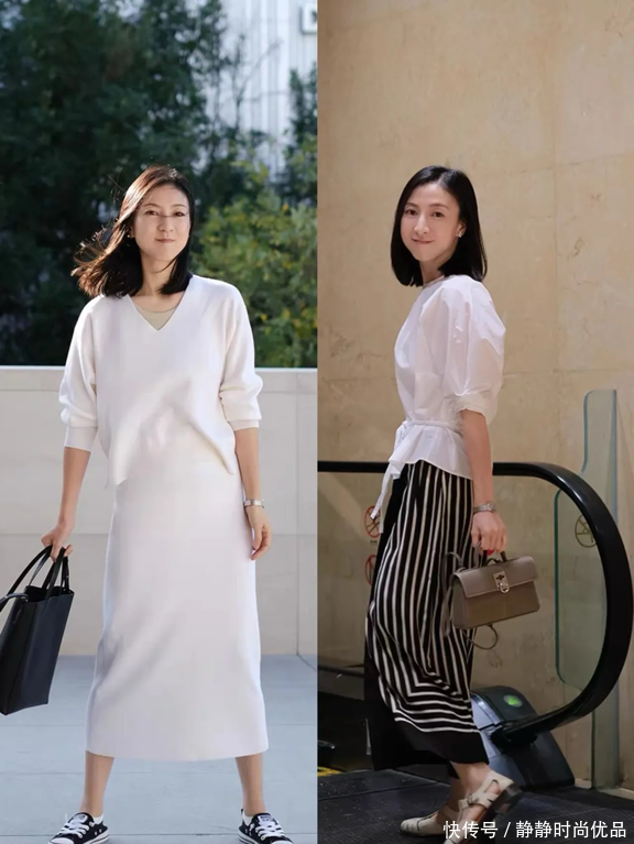 半身裙的搭配方式也比想象中多,你可以跟这些气质女人一样选择衬衫搭配半身裙,这种知性温柔的穿搭绝对是普通女生可以直接照搬的一组造型。