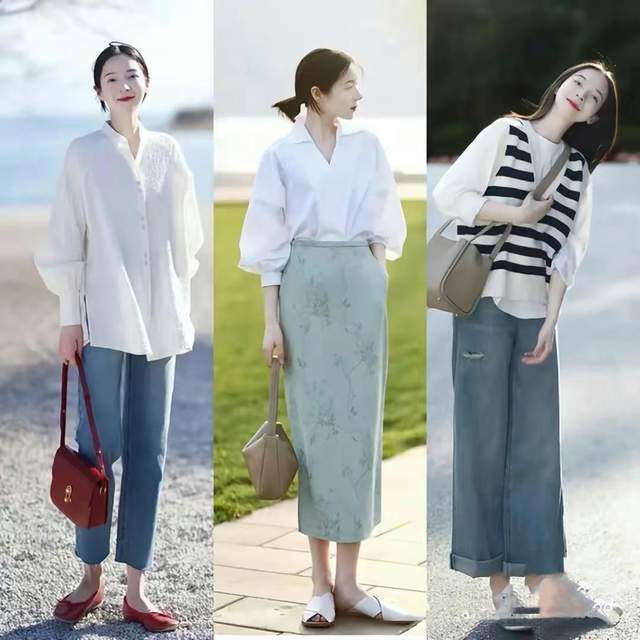 五一长假去旅游穿搭示范:衬衫针织衫+牛仔裤简约干练,谁穿谁美