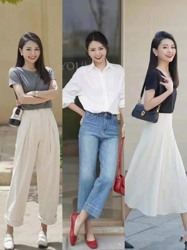 如果担心自己搭配颜色不好看的话,用经典的黑白搭配就够了,就像下面这三套穿搭示范,每一套都非常好看,不