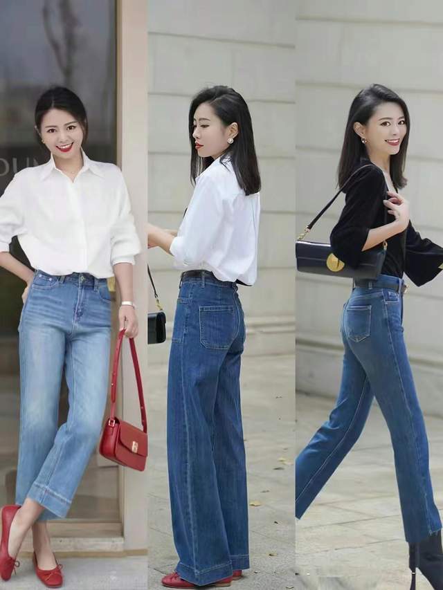 对于腿型粗假胯宽的女生就需要穿牛仔裤的裤了,他能把你的缺点藏起来,再搭配上一款白色的衬衫就够了。