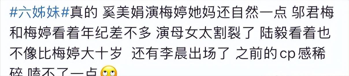 与陆毅、李晨等演员搭戏也缺乏CP感,与刘钧饰演的父亲之间的互动更是让人感到违和。