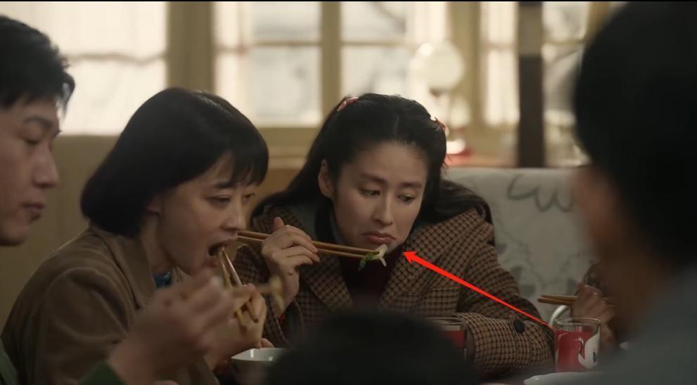 吃东西时翘着兰花指,与其他演员的自然状态形成鲜明对比,让人感觉有些刻意。