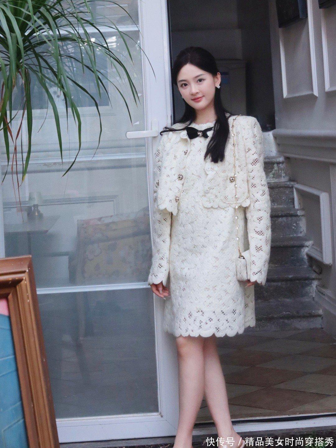 选择这款服饰的亮点在于其特殊的米白配色,这可是个特别温柔又有魅力的色彩哟~穿上这套服装,如果再配上淡淡的妆容和细跟高跟鞋,那可以说,你直接成为了一位小仙女本仙呢。