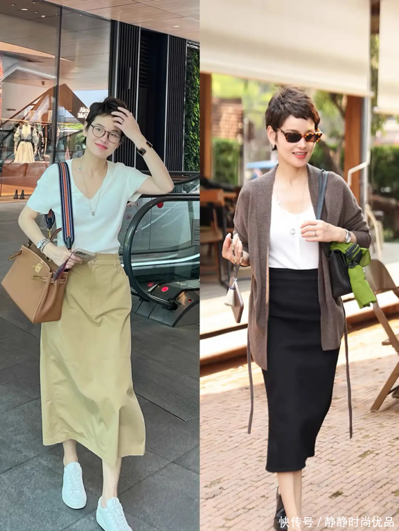 搭配的时候可以配合衬衫,背心,简单时髦,可以学习这个博主,给自己挑选基础款的直筒半身裙,时髦显瘦还轻盈,