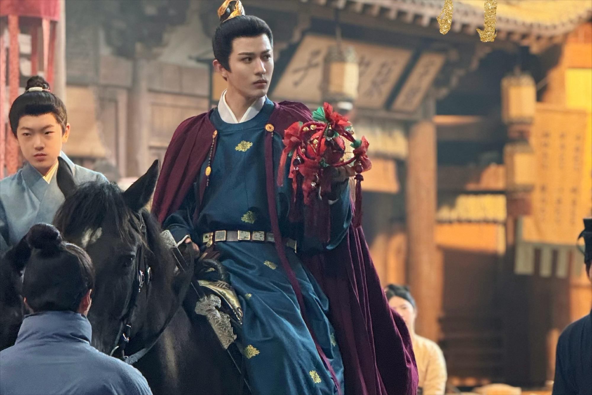 其修长的身形与华贵锦袍相得益彰,尤其红衣造型真的太惊艳了!再配上玉佩和宝剑,整个人的少年意气都快溢出屏幕了。即便因腿毛特写引发调侃,仍被赞“古装建模脸”。