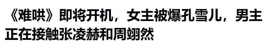 最开始传的女主是孔雪儿,搭男主张凌赫或者周翊然,都是年轻且适合偶像剧的脸。