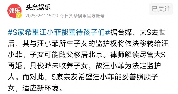 本以为在大S两个孩子的抚养权成功解决掉之后,她在九泉之下也终于可以瞑目了。