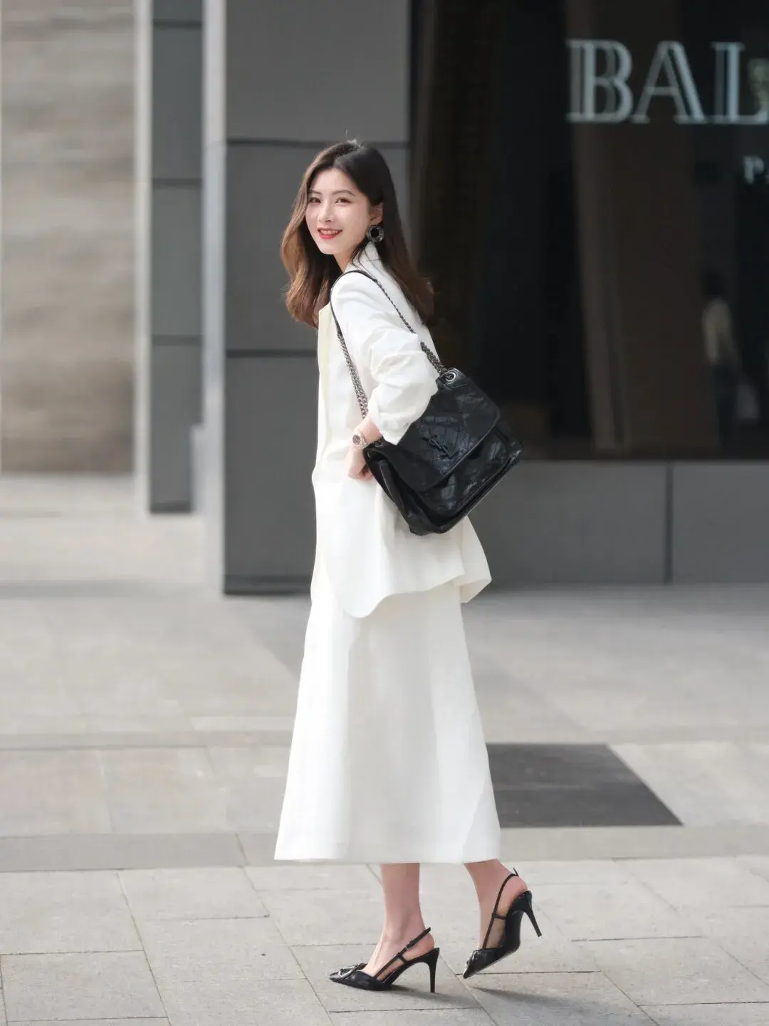 就像下面这两位博主的穿搭示范,一眼看上去,西服、西裤、裙子的面料都非常显贵。