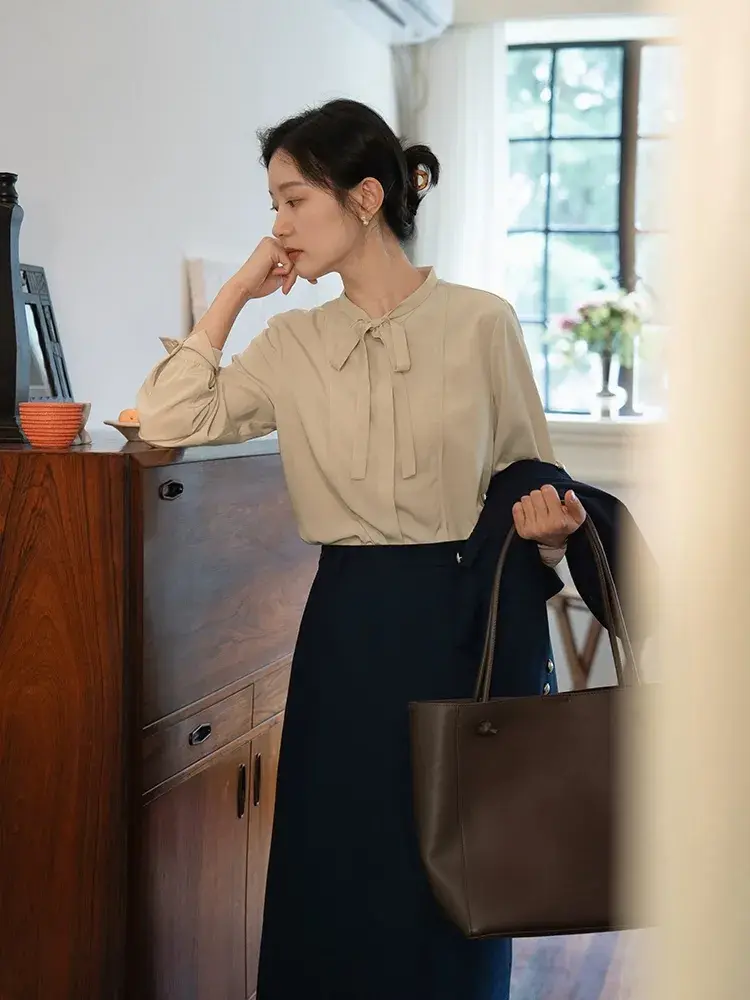 衬衫可以说是衣柜当中必不可少的时尚单品了,作为职场穿搭的话,找人都会选择一些中规中矩的小立领剪裁设计,但偶尔也可以尝试一些更加偏柔和感的系带衬衫,飘带衬衫作为咱们的职场穿着也完全不显突兀。