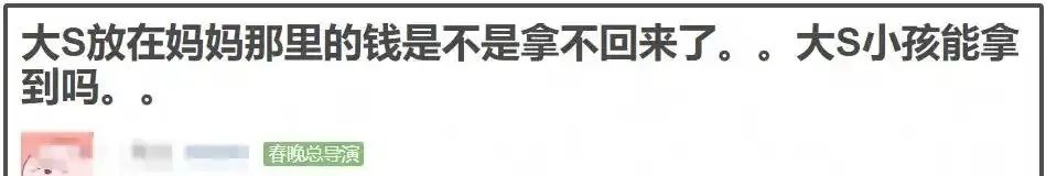 最近有瓜友在后台说看到大S跟妈妈曾因钱产生过争执,问她的钱是不是都在妈妈手上?会不会这钱连女儿的两个孩子也不给?锤爷没记错的话,在大S宣布二婚后被质疑跟具俊晔婚后经济状况不是很好,WW媒体采访过大S妈妈,问她会不会帮大S还房贷?大S妈妈表示自己掌管的钱是用来养老的,不管多少都不能用来还房贷。大S妈妈还自曝曾为钱的问题和大S发生过争执,觉得大S对钱没概念又攒不下来钱,自己又想让大S改变消费观念,所以就不打算给女儿掏腰包。